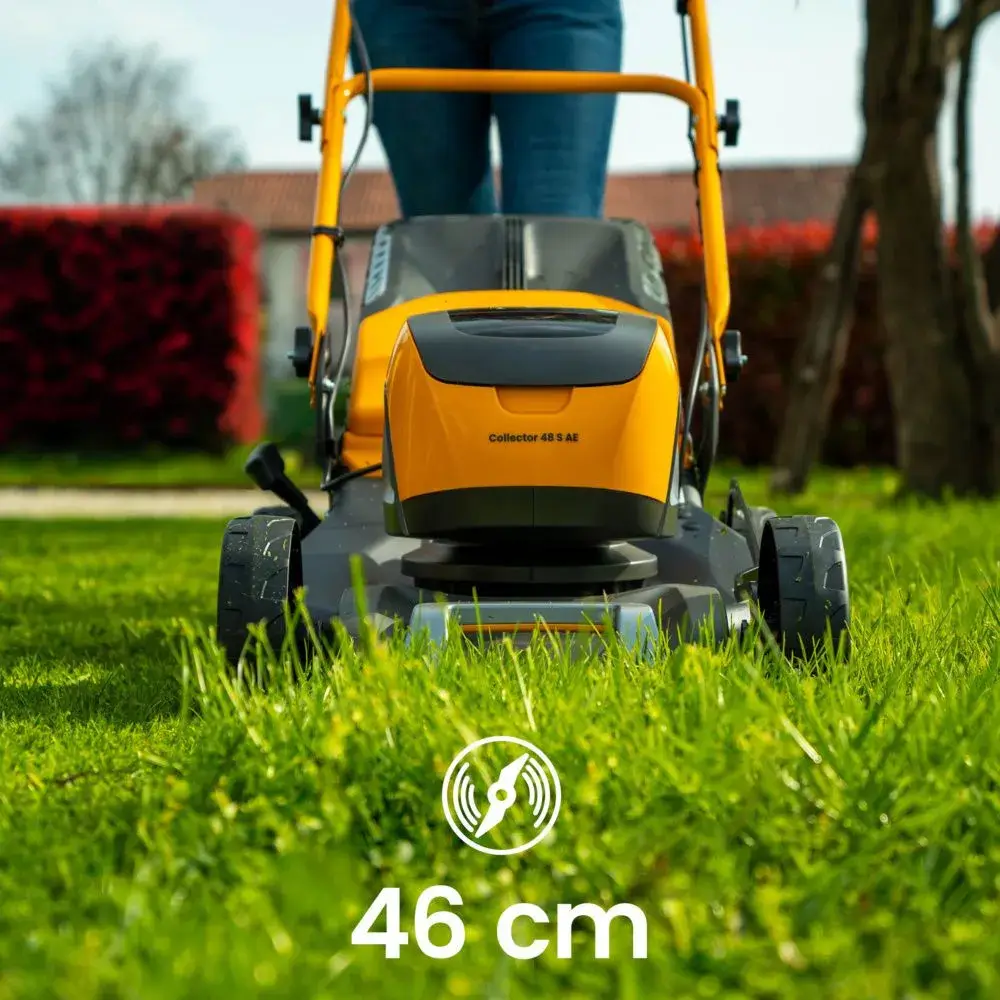Стальная режущая дека шириной 48 см, регулируемая по высоте в шести положениях.